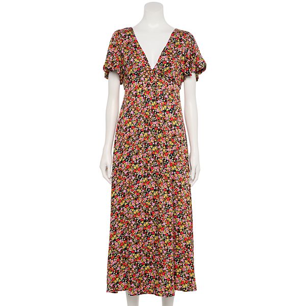 Juniors Rewind V Neck Strappy Back Midi Dress
